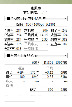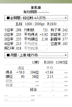 本題の麻雀の方ですが、ブログは更新していませんでしたが天鳳の方はちょこちょこやっていました。