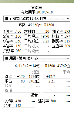 東南車(サブID:東風車、天鳳五段)