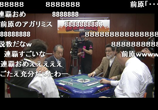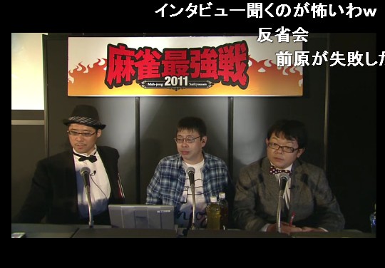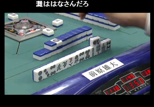 灘選手と小島選手はデカイ手が必要だったため、ほぼ前原選手と板川選手の一騎打ちの形となったが、2着の前原選手が親番で9500点差で1着の板川選手に付けていたが、前原選手がホンイツ・発の5800点を灘選手から九萬で和了ったのだが、南が手にトイツだったので南の方で和了れば親マンの12000点で優勝だったので、これを見逃し南での和了を待つ手があった。